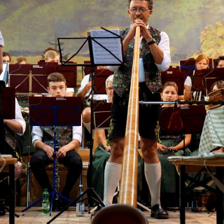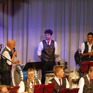 Mit den gewaltigen Klängen von Hymne und Triumphmarsch aus Aida, dem Choral und Rock Out und dem Capriccio mit drei Alphornsolisten mit Orchester, gab es drei mitreißende Hauptwerke. Doch damit noch nicht genug, kam noch eine richtige Solistenparade auf die begeisterten Besucher zu. Der Dessauer mit drei glänzenden Solo-Trompetern, der schmissige 50ger Landler mit dem Dirigenten an der Soloposaune und die Fascinating Drums mit einem souveränen Schlagzeugsolo mit Julian Steffl.