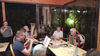 Am Freitag Abend verbrachten die Ausflügler einen gemütlichen Abend in der Pizzeria in Tscherms. Am Samstag gings dann in die Gärten von Trautmannsdorf nach Meran und am Abend wie auch am Sonntag zum Musikfest am gemütlichen Festplatz in Tscherms. Der Perfekte Abschluss war dort der Auftritt der Marktkapelle. Ein großer Dank geht an die Gemeinden Tscherms und Grassau an den Tschermser Bürgermeister Roland Pernthaler, die Obleute der Tschermser Musik Renate und Georg, sowie Andreas Gebauer, der im Vorfeld für den Ausflug 250 Euro spendiert hat! Die Partnerschaft zwischen den Gemeinden und vor allem der beiden Kapellen wurde freundschaftlich gefeiert. Weitere gemeinsame Unternehmungen sind in Planung.