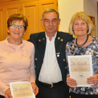Für langjährige Mitgliedschaft im Verein wurden für 25 Jahre Martin Brunnhuber, Peter Aigner, Florian Hörterer, Meggi Nedwed, Resi Strömer und Christian Loferer ausgezeichnet. Seit 40 Jahren im Verein sind Maria Boschner, Erika Hotz, Christa Baumgartner und Wolfgang Pohl.