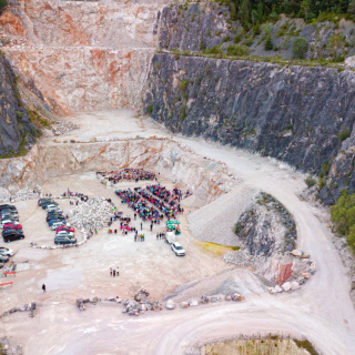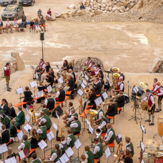 Zur Eröffnung gaben die beiden Musikkapellen gemeinsam einen Marsch zum Besten. Die 60 Musikanten haben damit die Wolken vertrieben und sogar ein Regenbogen war über dem Steinbruch zu sehen.