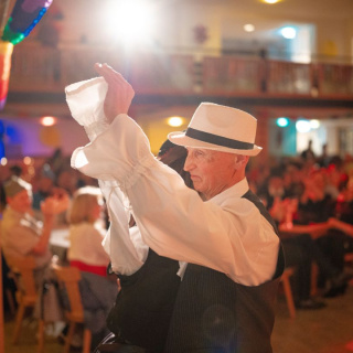 Das lag auch daran, dass der Musik- und Gesangverein um den Vorsitzenden Tobias Gasteiger keine Mühen scheute. Die Faschingsgarde Grabenstätt trat mit ihrer diesjährigen, so athletisch wie mitreißenden Show „Spuk im Grandhotel Grabenstätt“ auf und verzückte ihr Publikum. Zuvor sorgte Horst Lehnert mit seiner Partnerin in einer One-Man-Show für Spaß, als er mit ihr innig verbunden über das Parkett schwebte. One-Man-Show liest sich richtig, denn seine Tanzdame – eine Puppe – war ihm auf die Schuhe getackert.